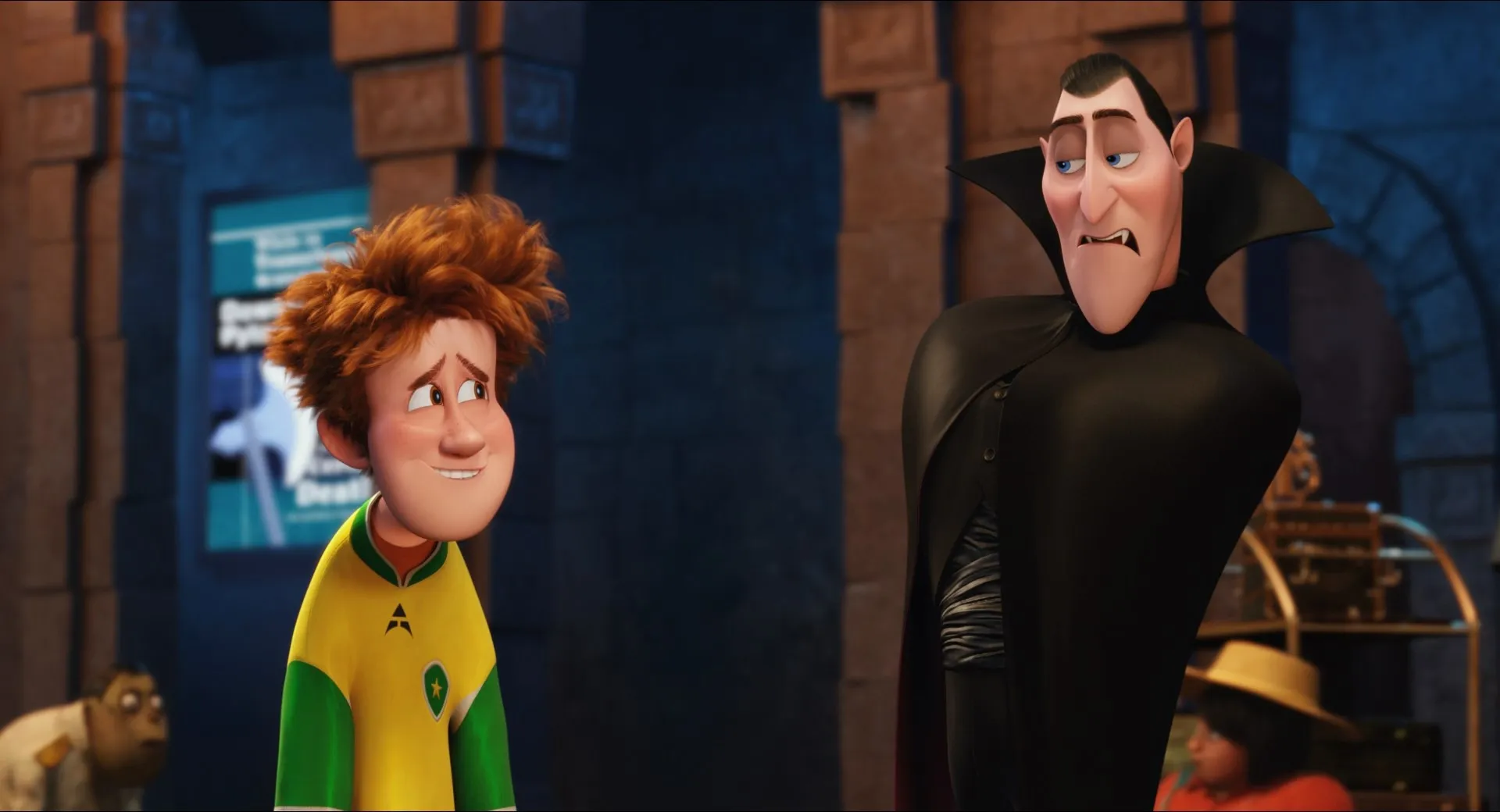 Cast: Adam Sandler as Dracula (voice), Andy Samberg as Johnny Loughran (voice), Selena Gomez as Mavis Dracula (voice), Kevin James as Frankenstein (voice), Steve Buscemi as Wayne (voice), David Spade as Griffin (voice), Keegan-Michael Key as Murray (voice), Asher Blinkoff as Dennis (voice), Fran Drescher as Eunice (voice), Molly Shannon as Wanda (voice), Megan Mullally as Linda (voice), Nick Offerman as Mike (voice), Dana Carvey as Dana (voice), Rob Riggle as Bela (voice), Mel Brooks as Vlad (voice), Jonny Solomon as Blobby (voice), Chris Kattan as Kakie (voice), Sadie Sandler as Winnie (voice), Sunny Sandler as Baby Dennis (voice), Jon Lovitz as The Phantom of the Opera (voice), Robert Smigel as Marty (voice), Ava Acres as Additional Voices (voice), Cole Sand as Additional Voices (voice), Rose Abdoo as Ticket Agent (voice), Luenell as Shrunken Heads (voice), Melissa Sturm as Jogger #1 / Tourist Passenger / Caren (voice), Paul Brittain as Pandragora (voice), Chris Parnell as Fly (voice), Allen Covert as Candle Cake Monster (voice), Stephen Apostolina as Additional Voices (voice), Brian T. Delaney as Additional Voices (voice), Aaron LaPlante as Additional Voices (voice), Steve Blum as Additional Voices (voice), Melendy Britt as Additional Voices (voice), David Cowgill as Additional Voices (voice), Jessica Gee-George as Additional Voices (voice), Grant George as Additional Voices (voice), Nicholas Guest as Additional Voices (voice), Todd Haberkorn as Additional Voices (voice), Jess Harnell as Additional Voices (voice), Bridget Hoffman as Additional Voices (voice), Lex Lang as Additional Voices (voice), Mona Marshall as Additional Voices (voice), Joseph Sanfelippo as Additional Voices (voice), Kirk Thornton as Additional Voices (voice), Matthew Wolf as Additional Voices (voice), Eva Bella as Additional Voices (voice), Jaeden Bettencourt as Additional Voices (voice), Mia Sinclair Jenness as Additional Voices (voice), Logan Kishi as Additional Voices (voice), Megan Richie as Additional Voices (voice), Andre Robinson as Additional Voices (voice), Carter Sand as Additional Voices (voice), Gunnar Sizemore as Additional Voices (voice), Fred Tatasciore as Additional Voices (voice), Kari Wahlgren as Additional Voices (voice), Audrey Wasilewski as Additional Voices (voice), Debra Wilson as Additional Voices (voice), Jim Wise as Additional Voices (voice), Michael-Leon Wooley as Additional Voices (voice), Lynnanne Zager as Additional Voices (voice), Nick Swardson as Kelsey (voice), Jared Sandler as Tourist Driver (voice), Jonathan Loughran as Cop (voice) (uncredited)